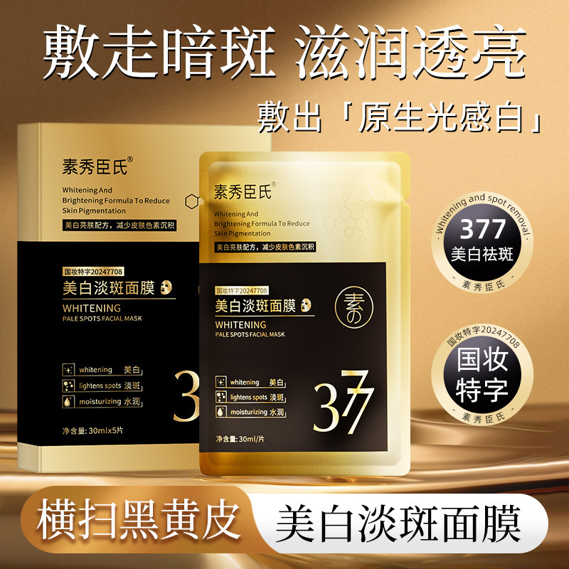 Su Xiuchen's 377 ホワイトニング アンド ブレミッシュ マスクは、くすみを改善し、肌の色合いを明るくし、小じわを軽減し、肌を引き締め、若返らせ、潤いを与えます。
