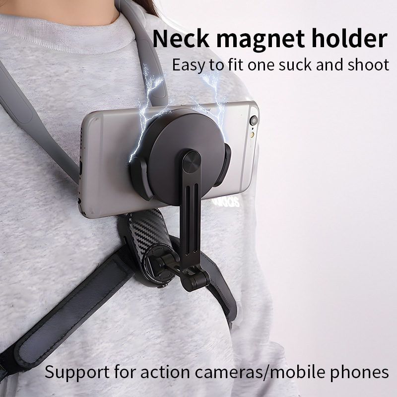 携帯電話用磁気吸着式ネックストラップスタンド 釣りやスポーツの一人称視点撮影用胸部固定スタンド