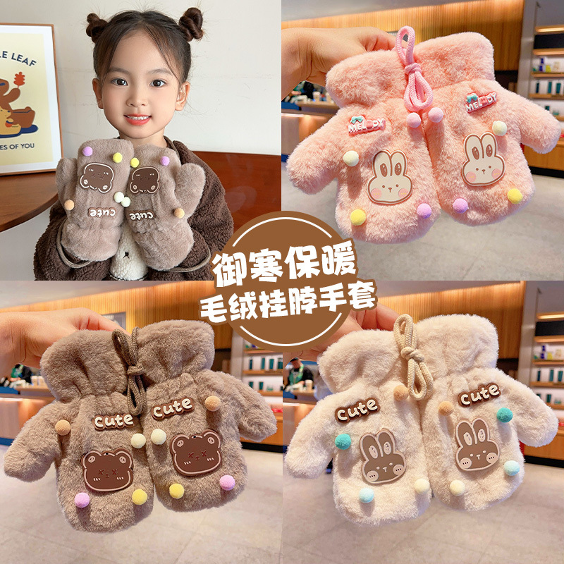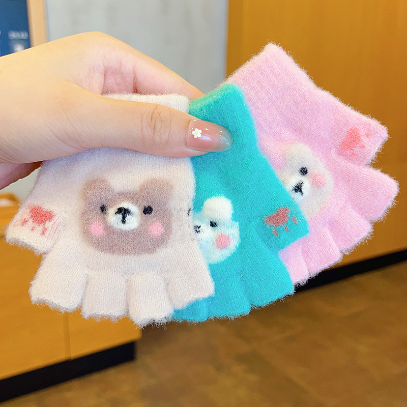 子供のぬいぐるみのニットの手袋のかわいい漫画の熊の男女の子供の秋冬の保温の指の半分の指の新型の5本の指のカバー
