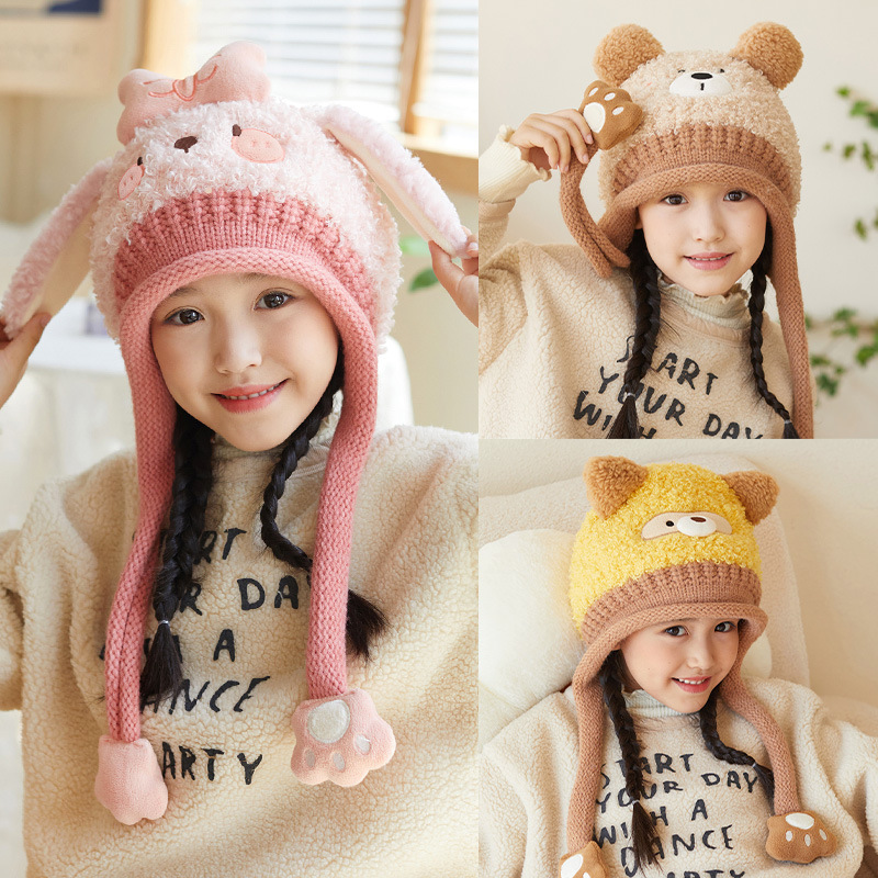 子供のニットの耳の頭の帽子のかわいい漫画の熊のカエルのパンダの男女の子供の冬のぬいぐるみは厚くて暖かいです。