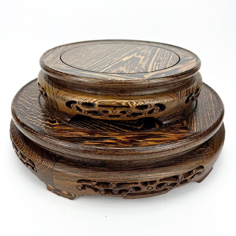 馬ラス木の台座の実木の円形の台座は溝の奇石の水槽の植木鉢の花瓶の置物のメーカーの卸売りを掘ることができます。