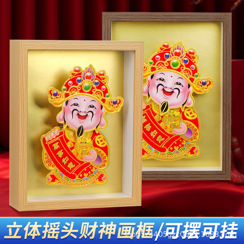 財神爺新型電動首振りデスクトップ置物フォトフレーム新年旧正月雰囲気置物リビングルームプレゼント装飾