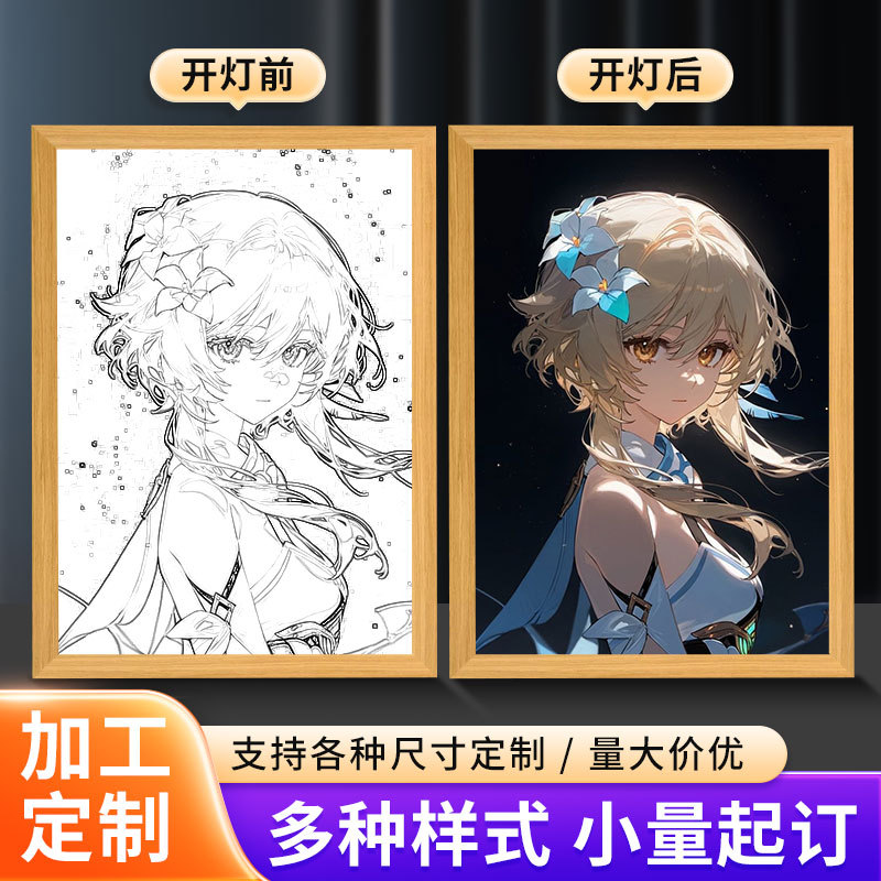 国境を越えたアニメの照明画アクリル板のカラー印刷装飾画の鏡の金のフォトフレームのランプの卸売り