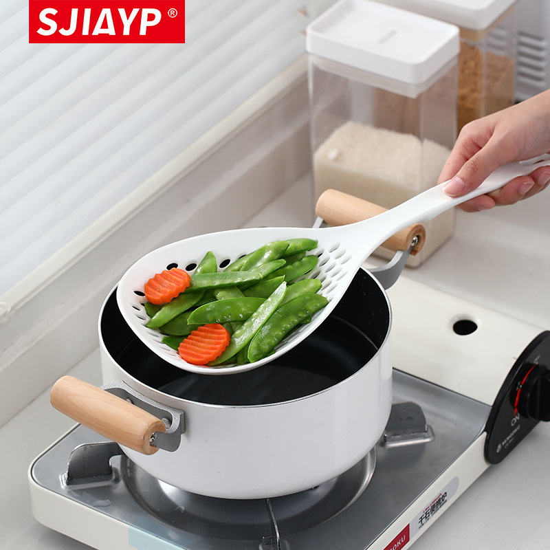 日本式食品級の長い柄のプラスチックの大きいサイズはスプーンを漏らします。