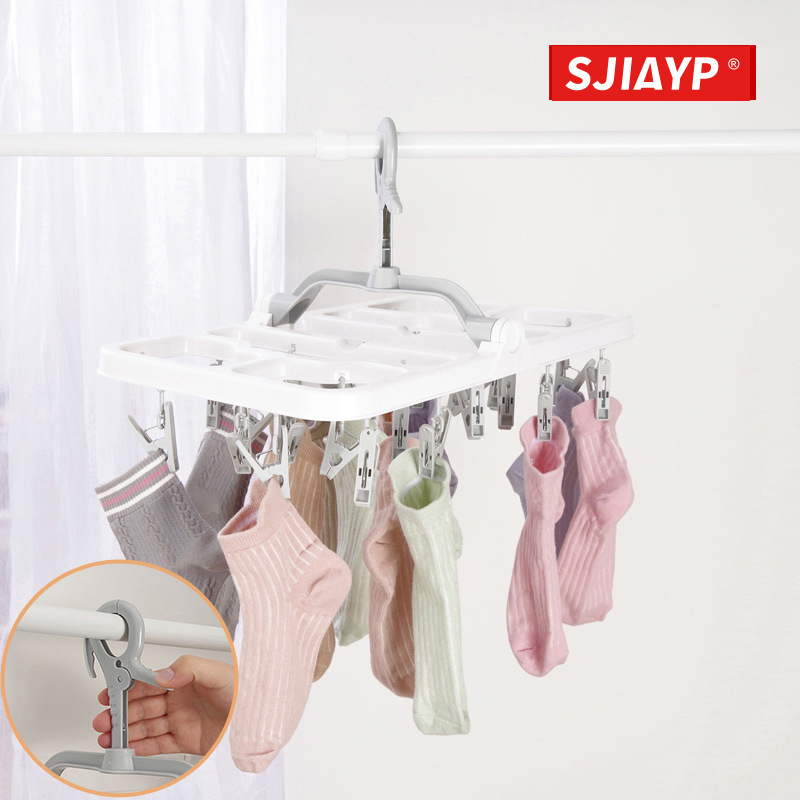 日本式多機能折り畳み可能多クリップハンガーベランダ防風ビニール靴下下着干し棚神器
