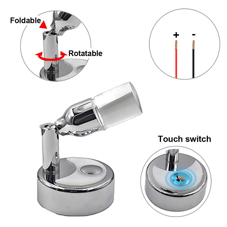 Rvヨット10-15v ledボートライトステンレス暖かい白タッチ可能なスイッチトレーラー内部読書灯