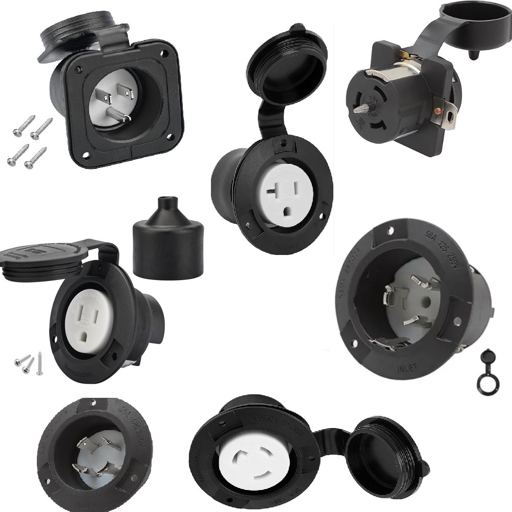 Rvヨット20アンペアac電源入力ソケットNEMA 5-20R 125ボルトラウンドブラックダストキャップ