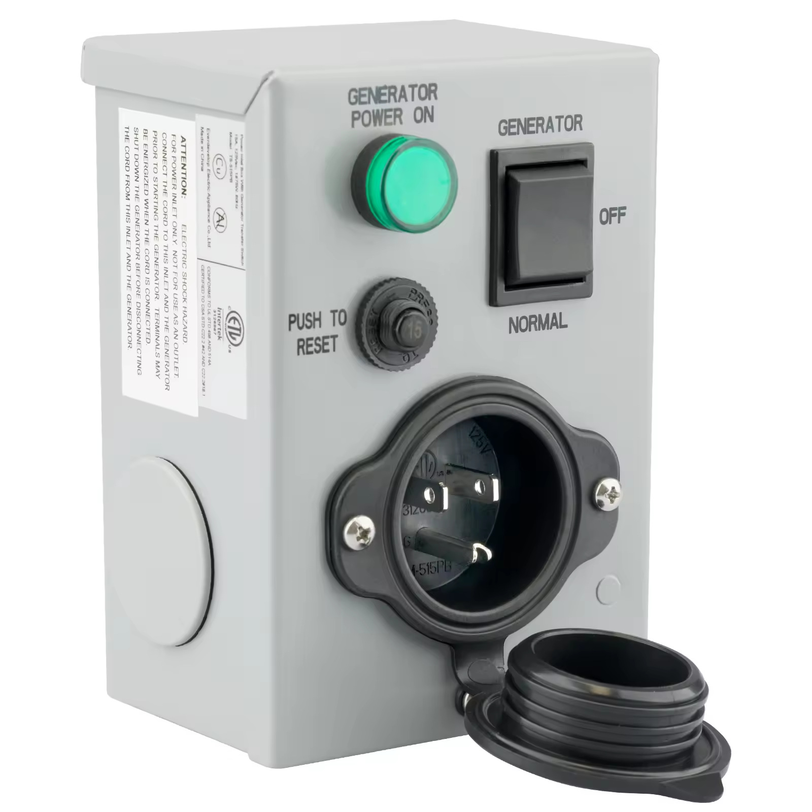 Nema 5-15p発電機変換スイッチ電源吸気ボックス、15a 125v手動変換スイッチ、ベルト付き