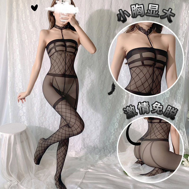 セクシーなセクシーな欧米の透かし彫りの露乳の魅惑的な小さい野良猫のネットの服のスカートのスーツの黒い糸の代行の7420