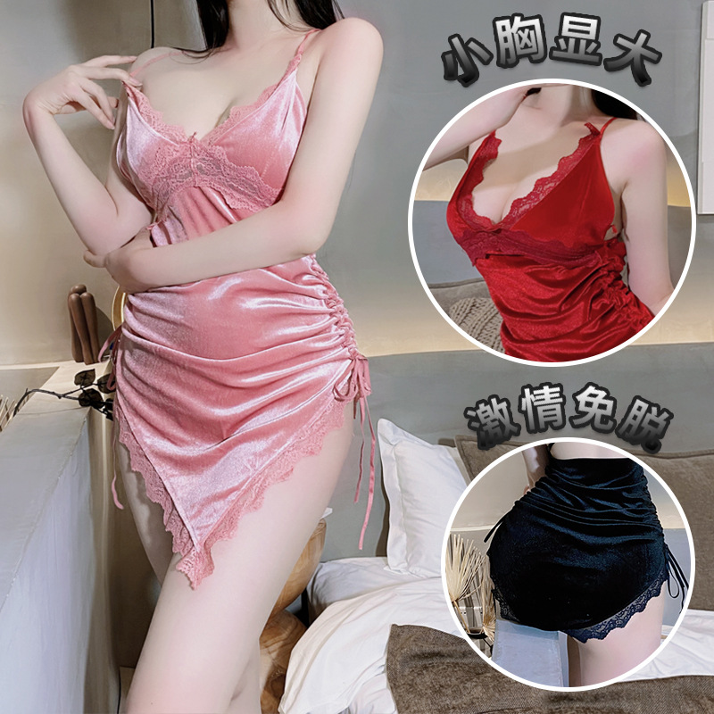 セクシー刺繍ストラップ誘惑透視深vパジャマ夫婦調子寝スカートセット