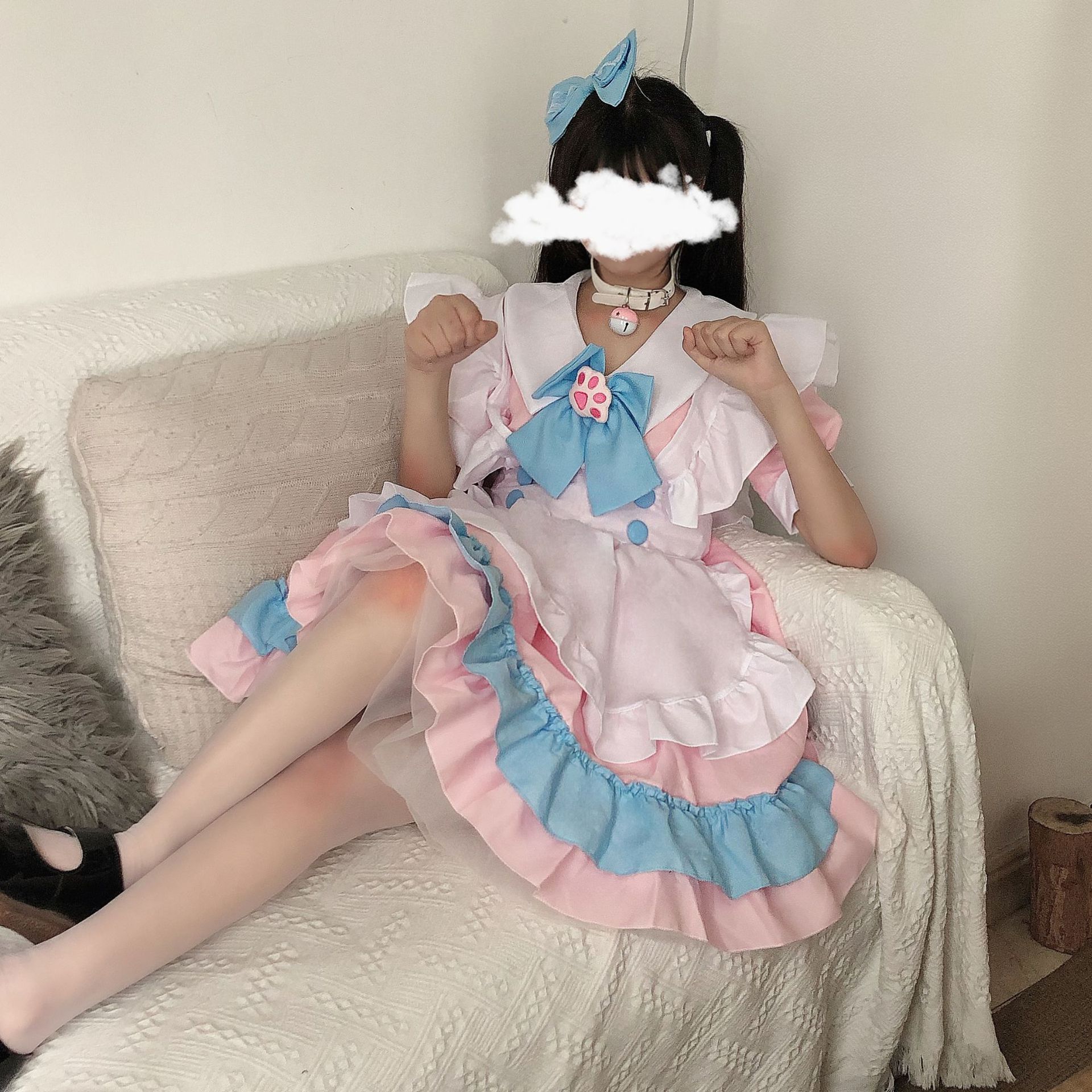 セクシーな下着のメイドの服のピンクの青い萌え妹の王女の女中の柔らかい妹の色の猫の耳のかわいいコスプレのアニメ