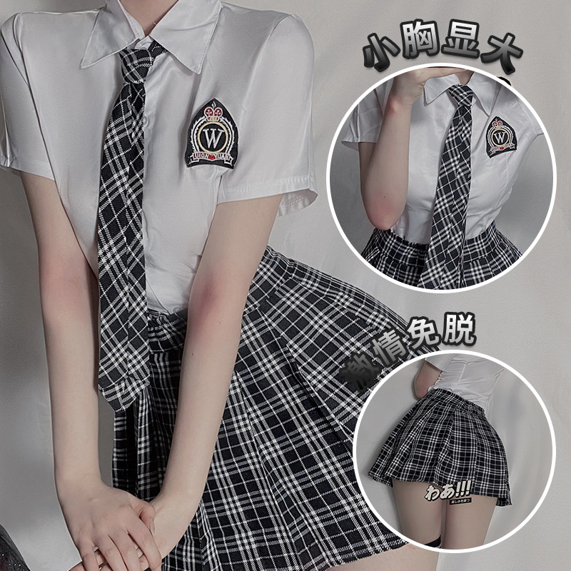 セクシーな下着の制服の誘惑の騒々しい学生の服装の格子のネクタイの分体の清純な日韓のキャンパスの制服の役は演じます。
