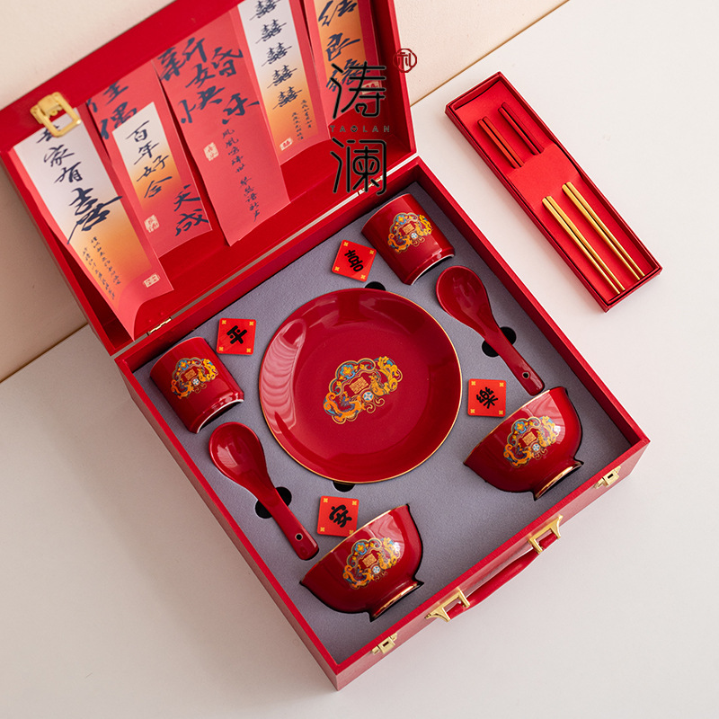 結婚式の名前変更、ティーカップ、茶碗、茶器、女性の持参金用品、結婚式の丼と箸、結婚式のボウルと箸のセット