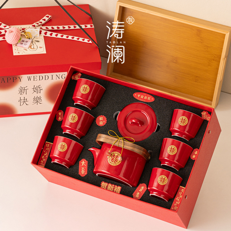 ウェディングティーセット、新婚夫婦への結婚祝い、新婚夫婦へのティーカップトレイ、ティーポット、婚約用の嫁入り用品