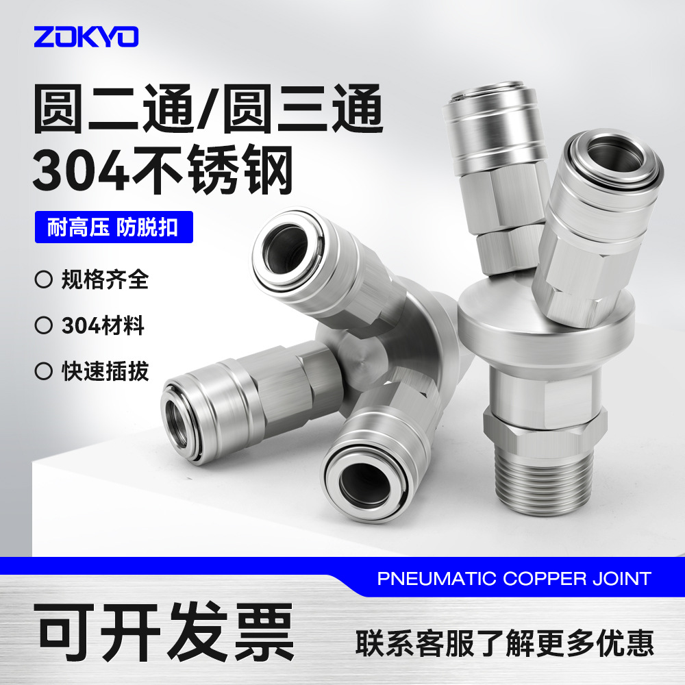 ステンレスセルフロック丸三方SMY外糸エアC式クイックジョイント三差フォークエアコンプレッサSMV円二通