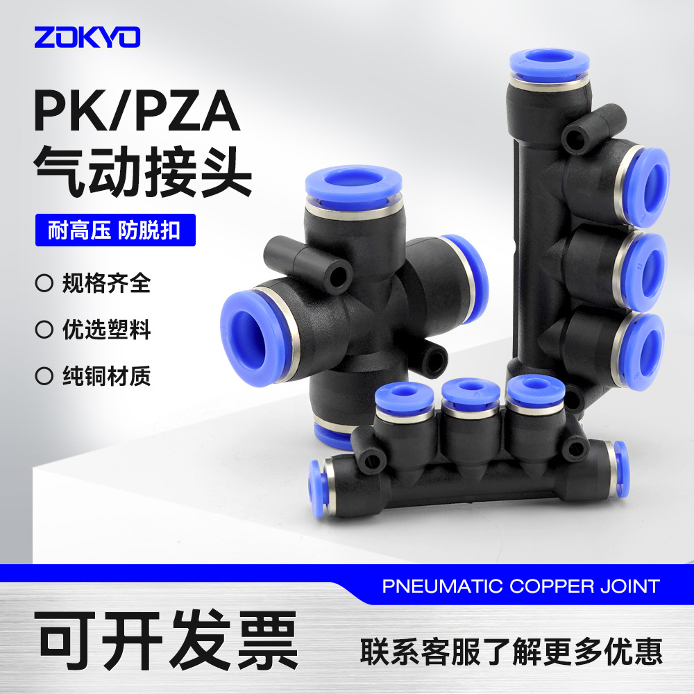 空気圧気管クイックコネクタ十字四方向プラスチックPZA4/6/8/10/12部品アクセサリー迅速設置