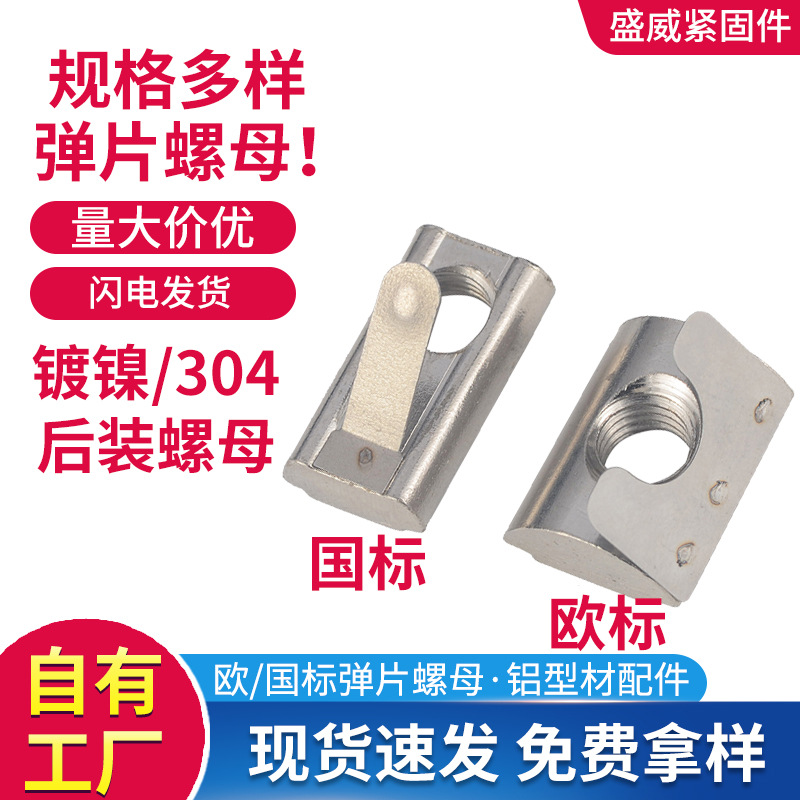 欧標国標アルミ形材弾片ナット部品304ステンレス標単点弾片20-30-40-45型