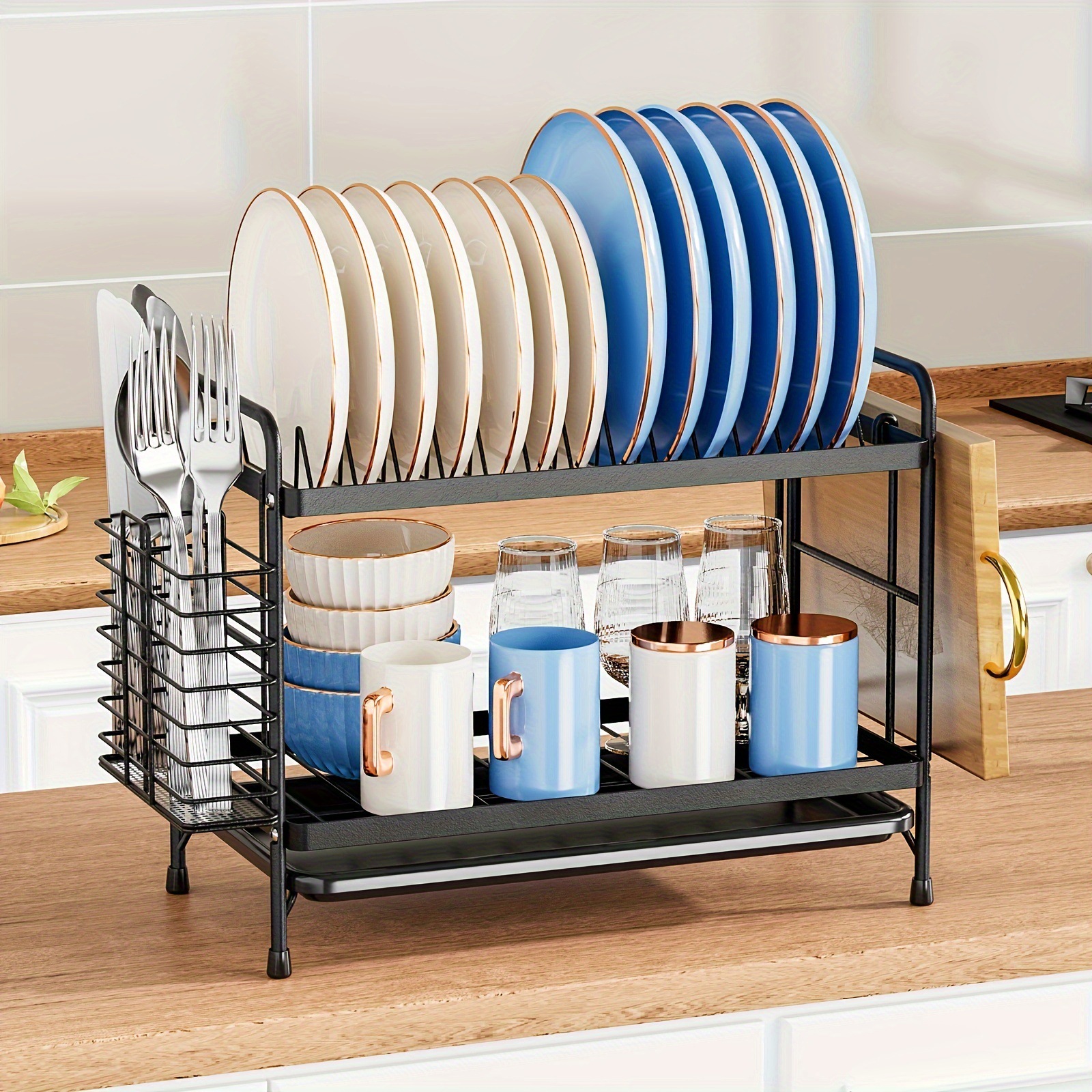 キッチン水切りラック、食器棚、鉄製箸立て、まな板置き、カウンタートップ食器収納ラック、キッチン収納
