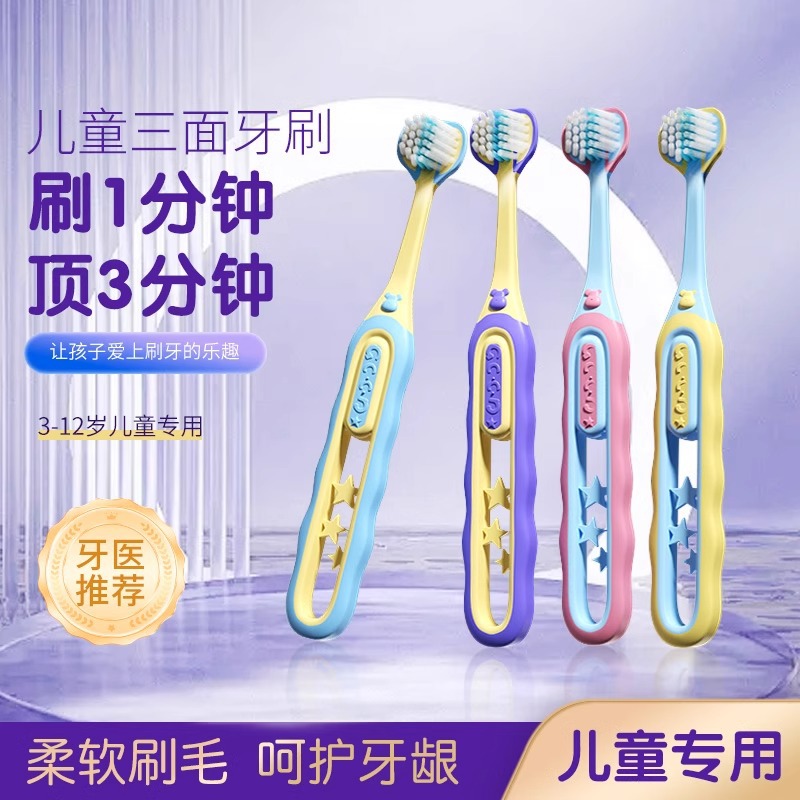 ドロップシッピング [子供用三面歯ブラシ 2本パック] 3~12歳向けの高級柔らか毛三頭子供用歯ブラシメーカー