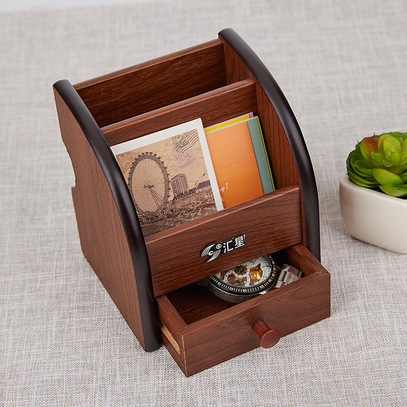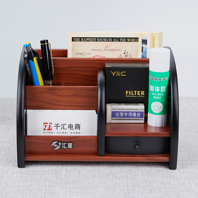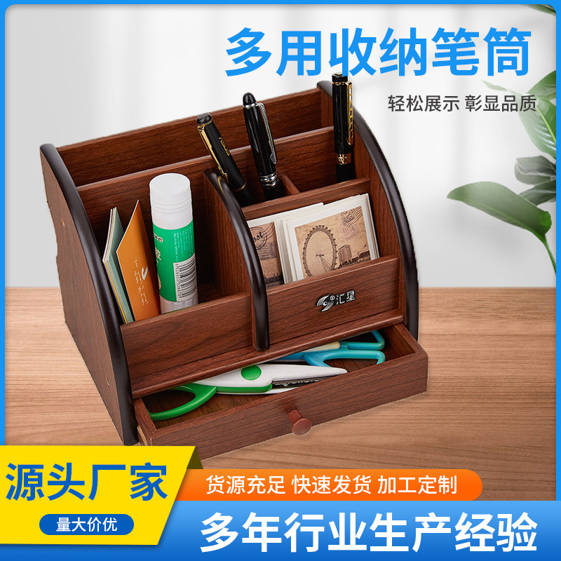 汇星カスタム木製筆筒デスクトップ収納木製多目的名刺収納印字可能リモコン収納ケース