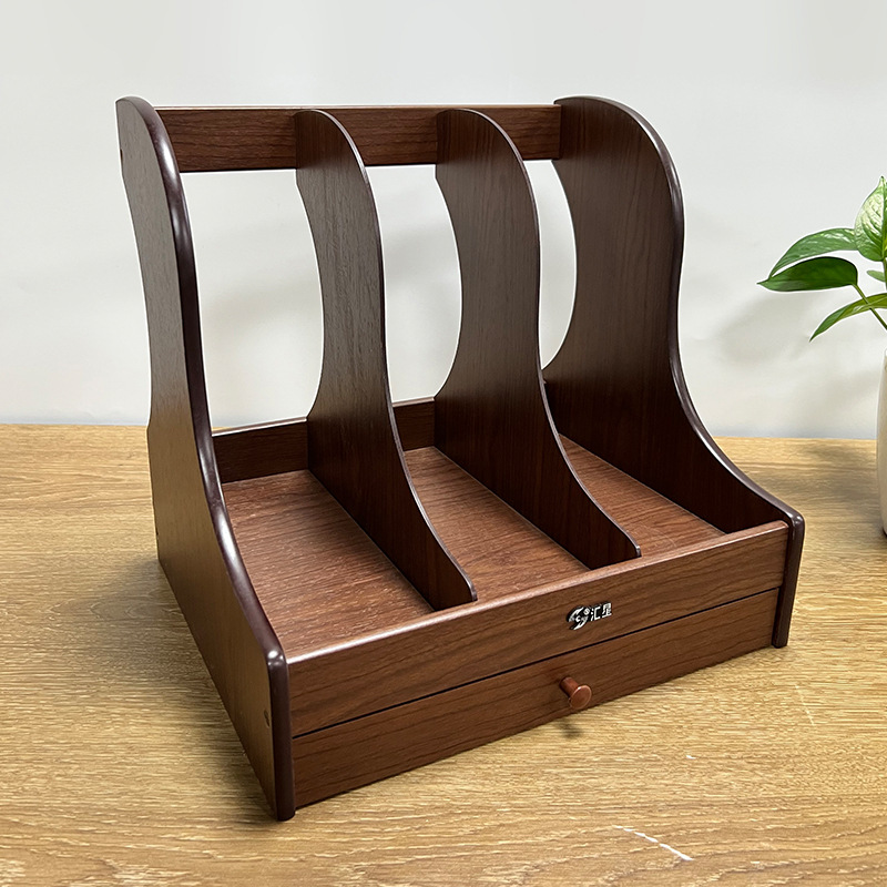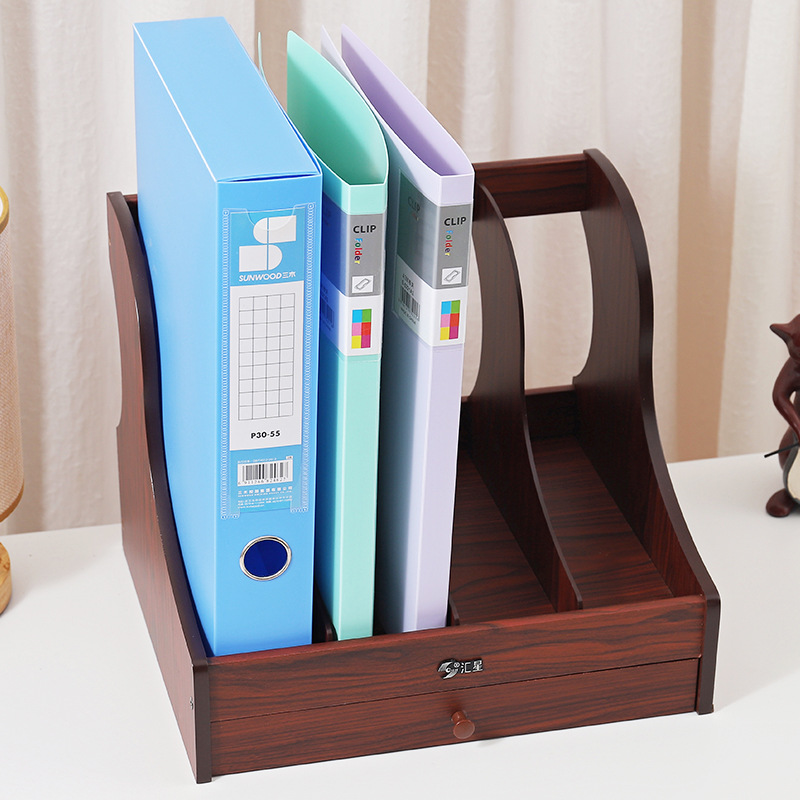 木の三欄のファイル棚のデスクトップのファイルの収納箱の本棚のファイルの枠の事務用品の棚の収納