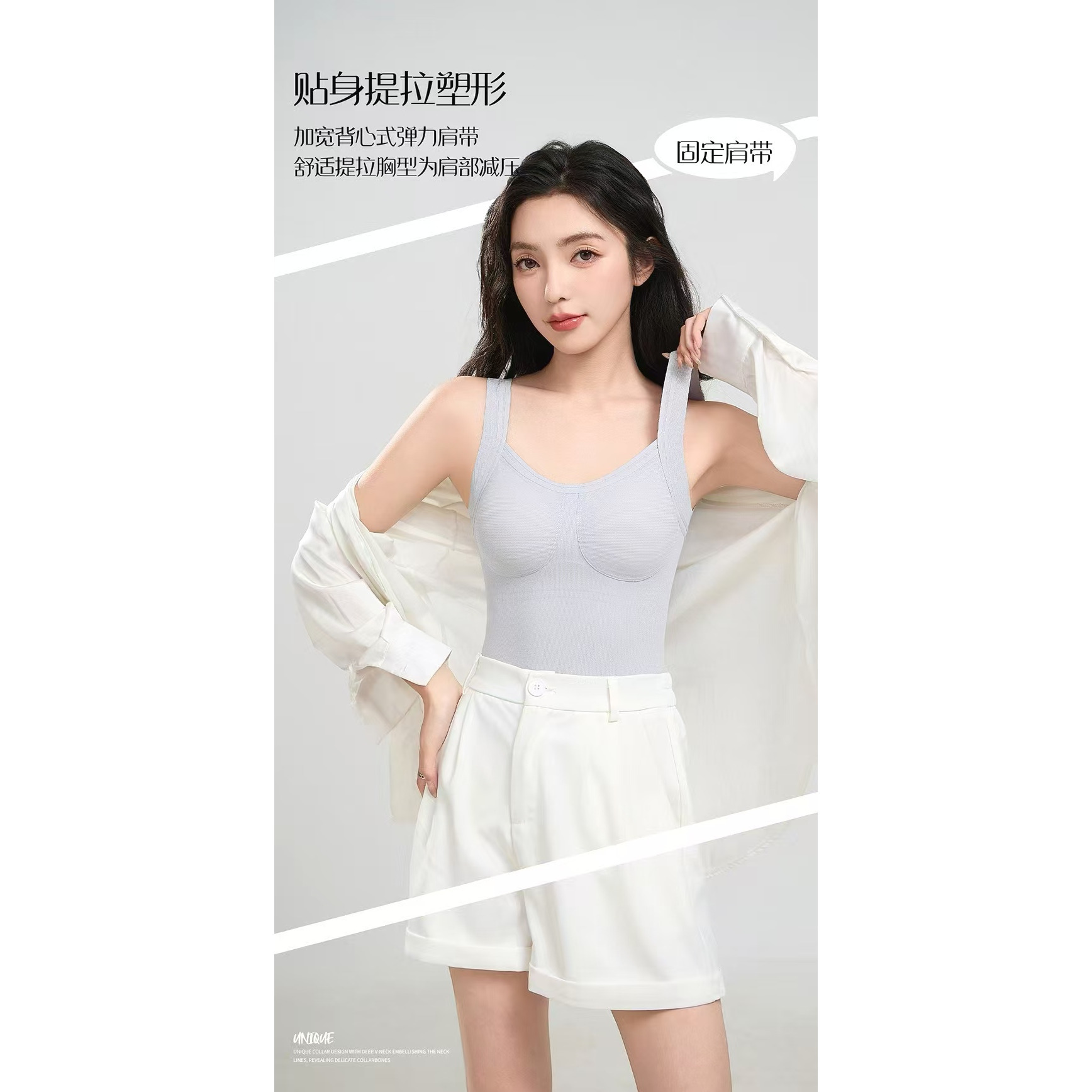 糸状の質感、微細な空洞、高弾性、涼しい生地、ぴったりフィット、リフティング、シェイプアップ、幅広ショルダーストラップ、ワンピースキャミソール