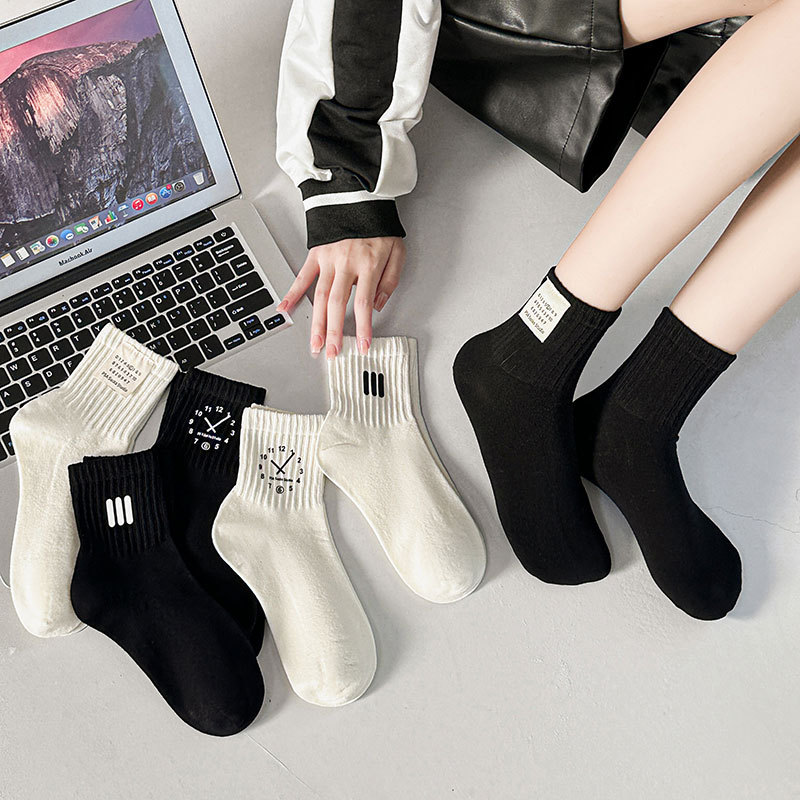 黒と白の靴下の女性の中筒靴下春と秋の綿の靴下は汗を吸います。
