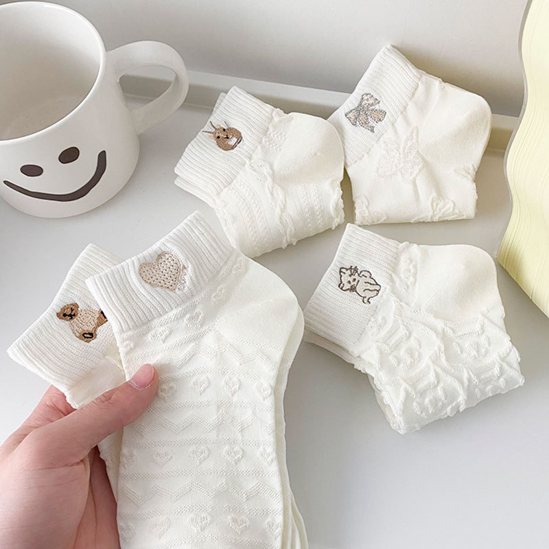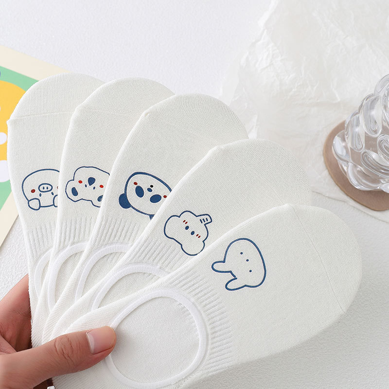 白い靴下の女性の夏の薄い綿の底の浅い口のステルスの女性の靴下の韓国のかわいいアニメの靴下はついて落ちません。