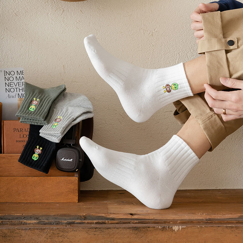 緑の靴下の女性の中筒の靴下のinsの潮の双羅の口のネットの赤い服は外で春秋のタイプの綿のスポーツのストッキングの男性を着ます。