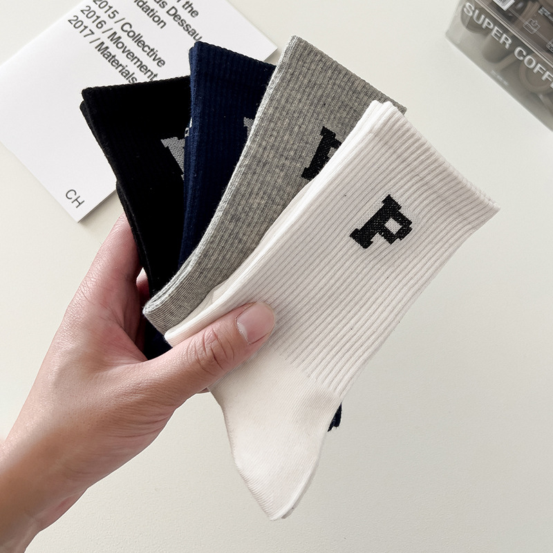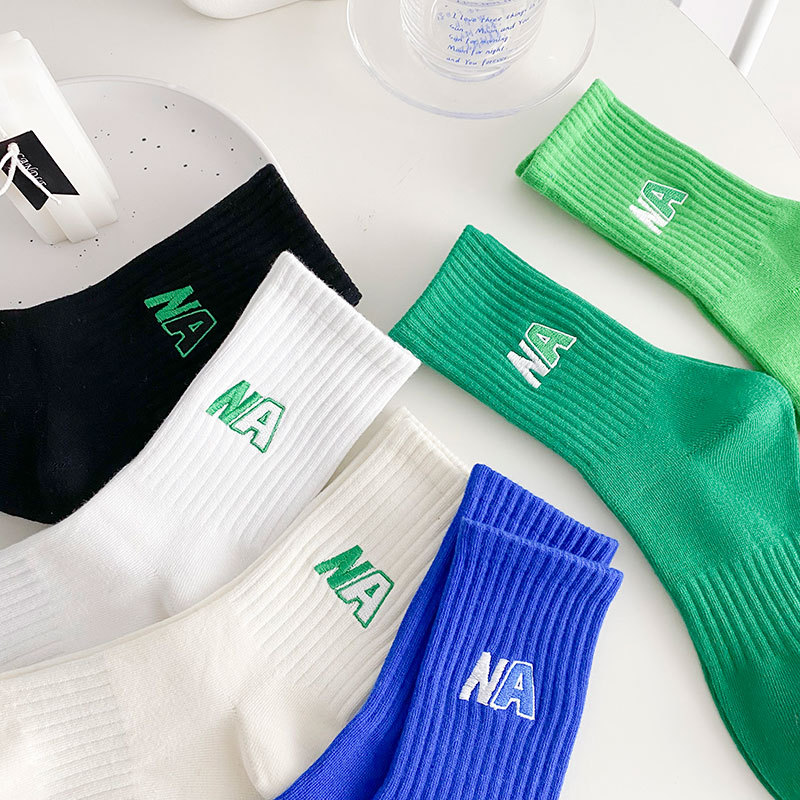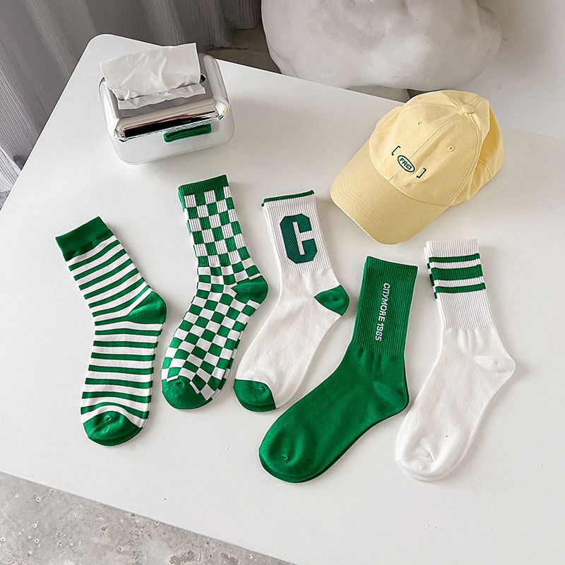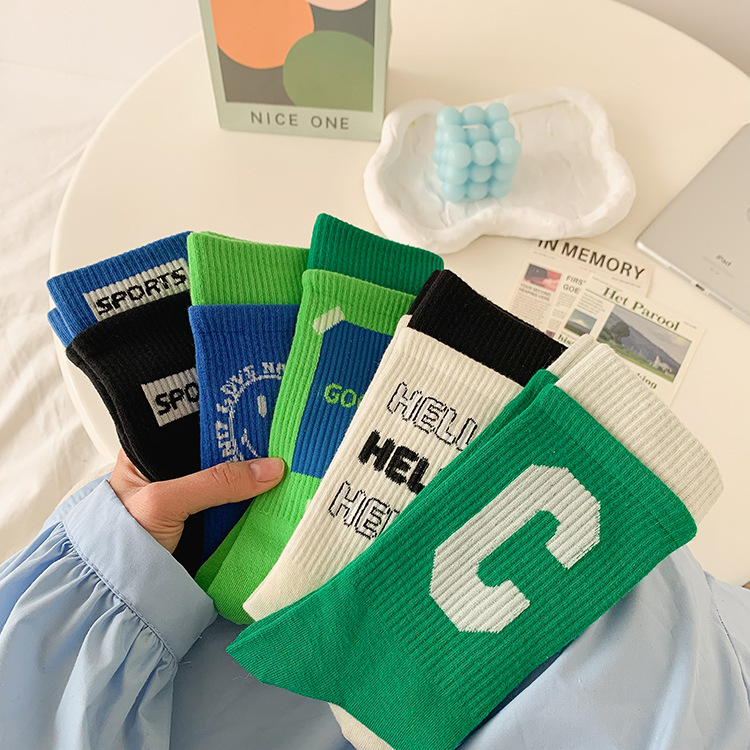 緑の靴下の女性の純綿の中筒靴下ins潮網の赤いタイプは韓国のアルファベットのストッキングの春秋タイプのストッキングを着ます。
