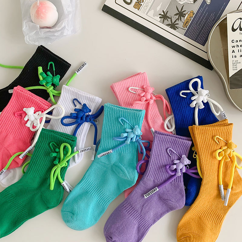 ピン熊靴下女性夏薄手ins潮クラインブルーネット赤外着個性運動中筒靴下夏
