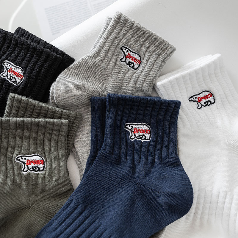 靴下の男性のソックスの日本のホッキョクグマの刺繍の純綿は汗を吸います。