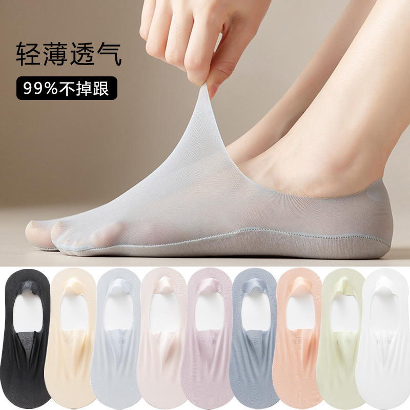 氷糸の船の靴下の女性の夏の薄いタイプの全ステルスの低い助けの浅い口のシリコンの滑り止めは純色のハイヒールの靴下と落ちません。