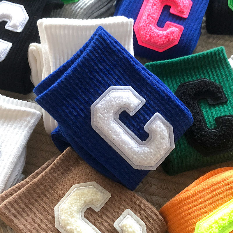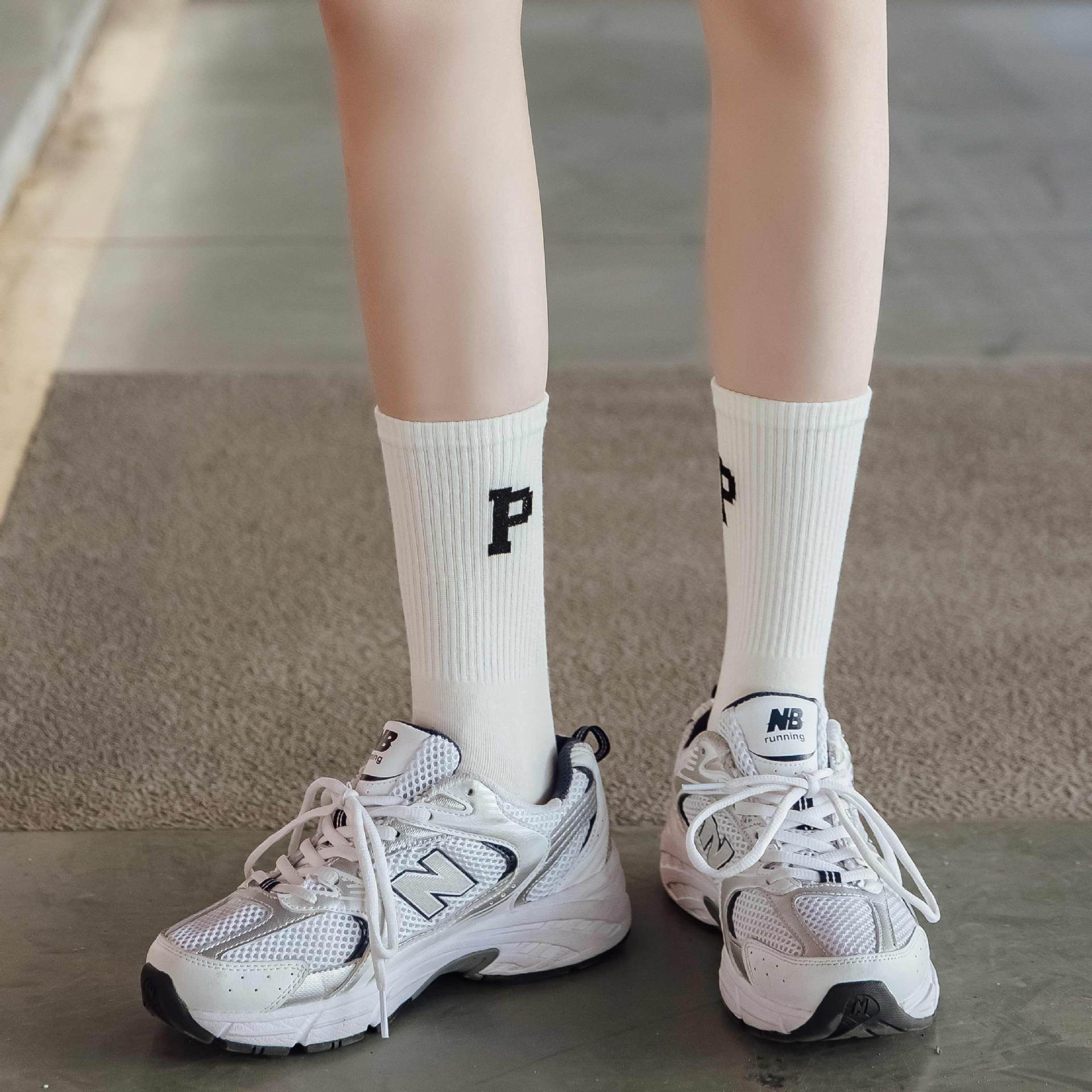 アルファベット靴下男女春秋中筒靴下外着潮ins灰色高筒運動ストッキング秋純綿靴下