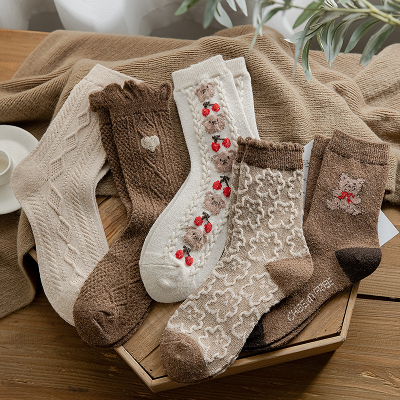 靴下の女性の中筒の靴下の秋冬の厚い保温のウールの靴下の日本のかわいいinsの潮の森の系の復古の靴下
