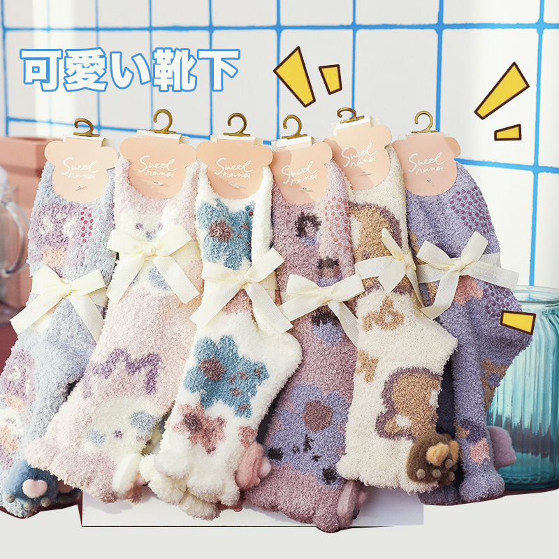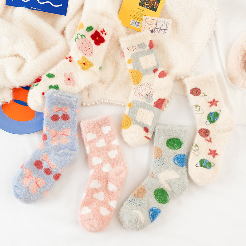 家で寝ている靴下の子供ミンクの毛の中筒の靴下の日本のかわいい秋冬の厚い保温は毛の床の靴下を落としません。