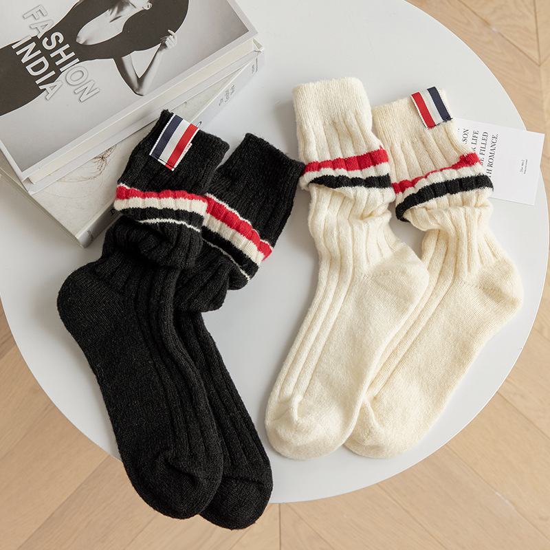 ウールの靴下の子供の中の筒の靴下の秋冬の厚い保温の学院の風のストライプの日本のinsの潮の長い筒の積み重ねの靴下