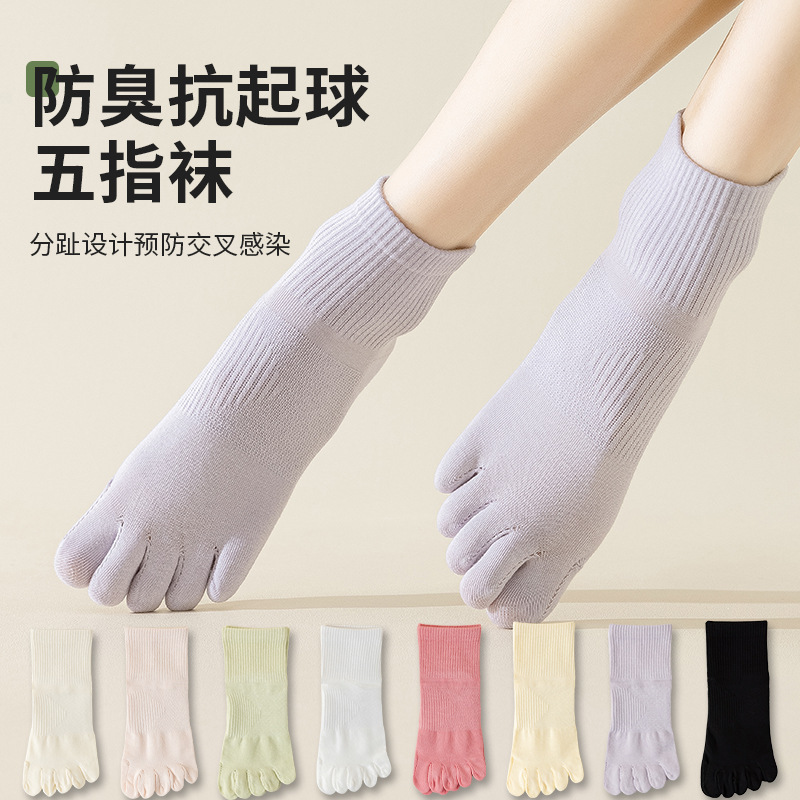 女性用5本指ソックス、毛玉防止、春夏の吸汗消臭、薄手ミッドチューブウエスト、女性用ボンレスシームトゥセパレートソックス