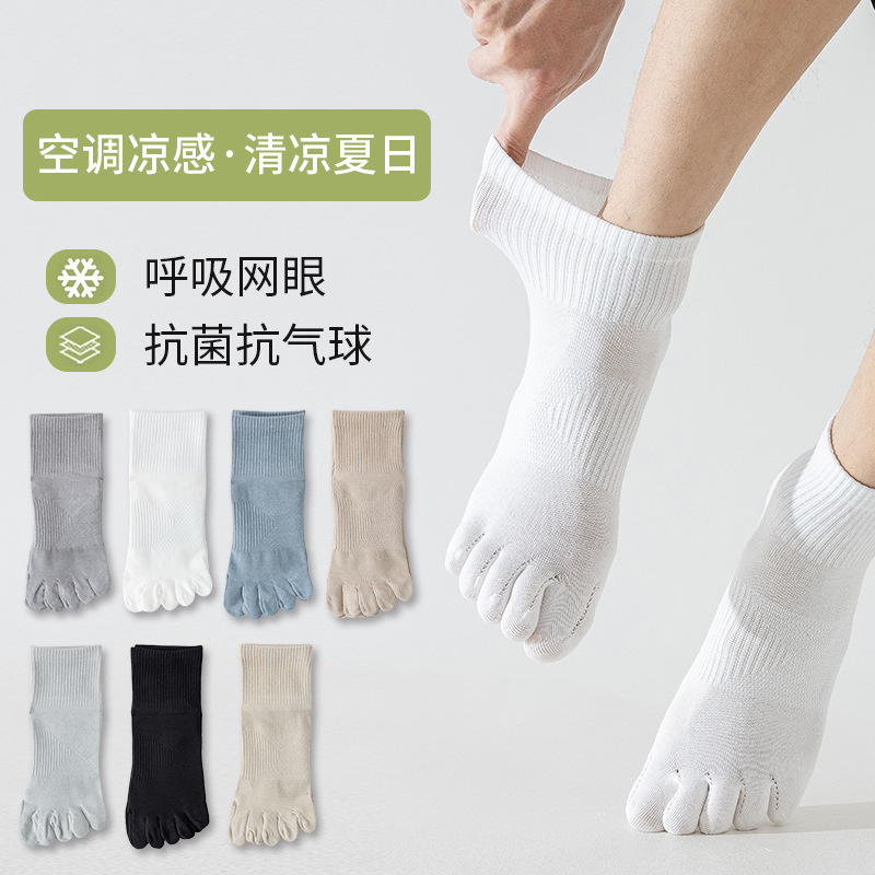 五本指ソックスメンズ中筒靴下吸汗防臭無骨スポーツ分指ソックス白春夏薄い五本指足指ソックス