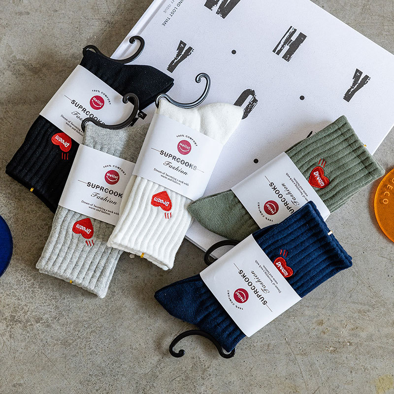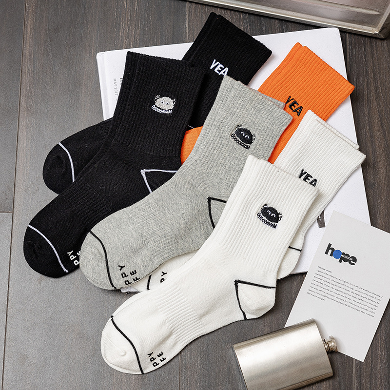 【Mawang】ins刺繍愛靴下復古日系潮牌中筒靴下純綿運動男女ストッキング