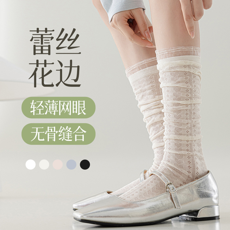 レースのふくらはぎソックスjk靴下女性春夏の薄いメッシュ通気性レディース骨なしの白いスタッキングソックス女性