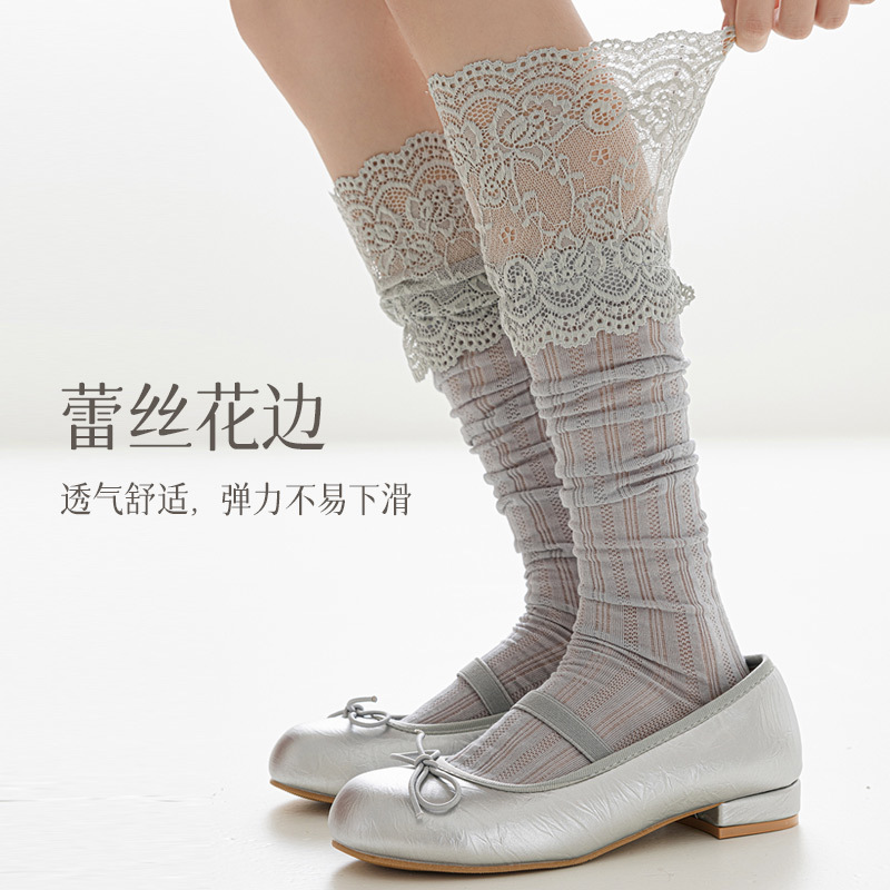レースの足の靴下の女性の春夏の薄いタイプの純欲風の夏の女性の膝の靴下のロリータの長い筒の大きい足の靴下
