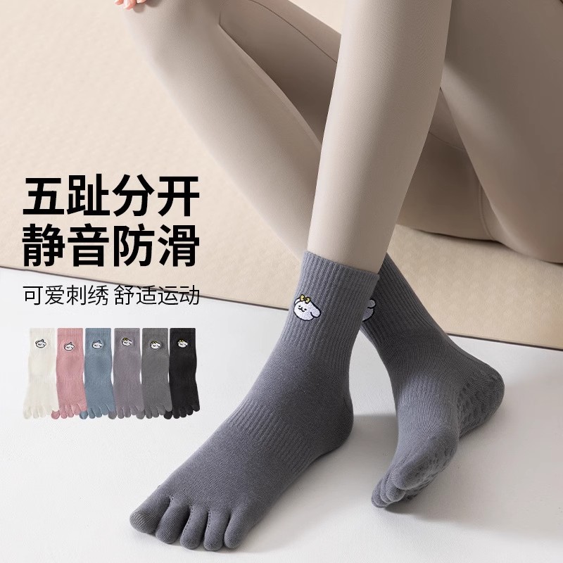 5本指のヨガの靴下の子供の専門の滑り止めの室内のフィットネスの運動のプラティの漫画の刺繍は足の指の中で靴下の女性を分けます。