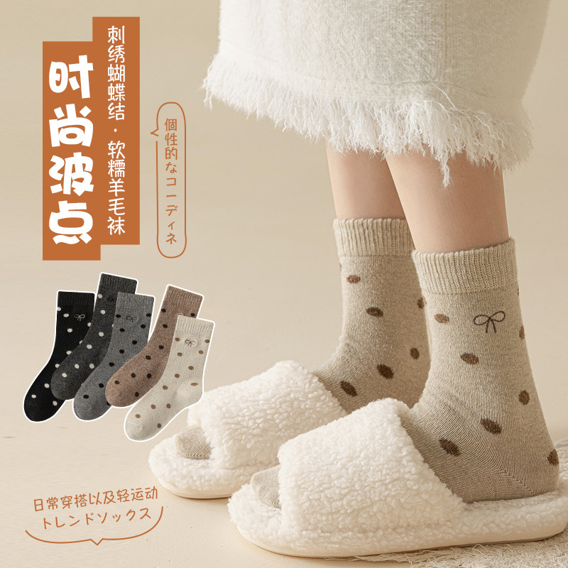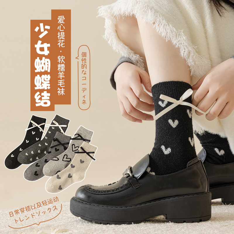 ウールの愛の蝶結びの靴下の女性の中筒の靴下の秋冬の金は厚いです。