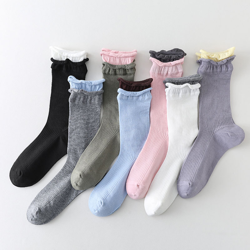 縁を巻いて靴下の女性の中筒靴下の春秋のタイプの薄い金は色のドーパミンにぶつかって百合の夏の通気性の靴下を積みます。