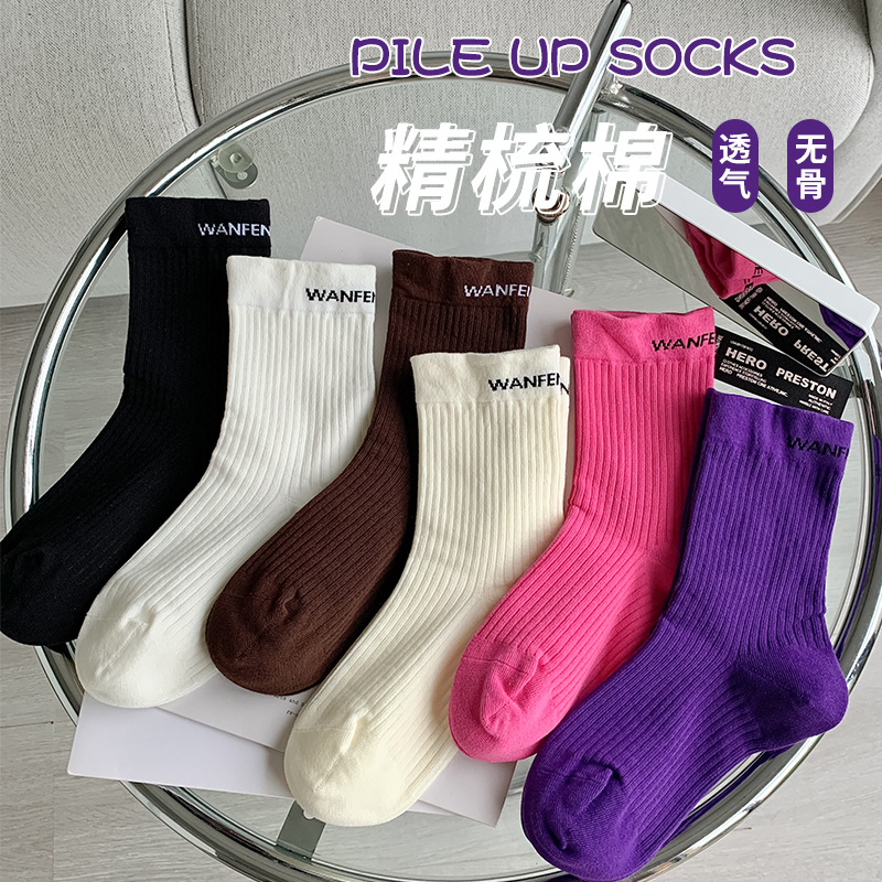 純色の靴下の子供の中の筒の靴下の春秋のタイプのinsの潮の骨のない精練の綿の日系の学院の風の百合の積み重ねの靴下の女性