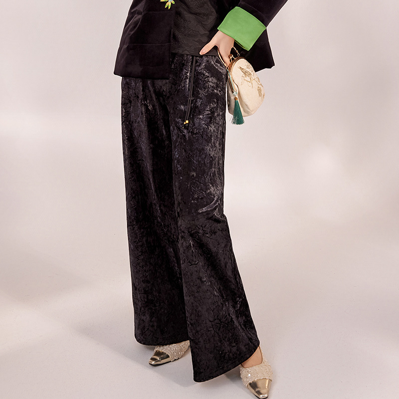 秋の新型国風高腰垂感ベルベットカジュアルストレートパンツ新中国式ゆるいワイドパンツ女MX006