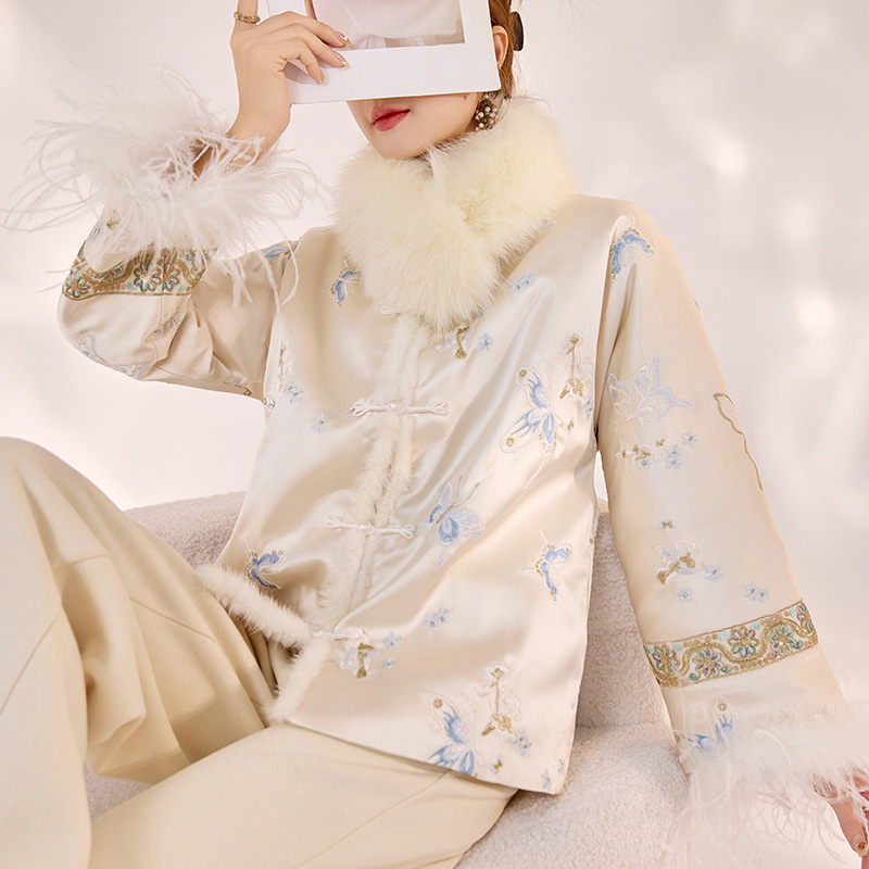 新しい冬のスタイル、中国風の刺繍が施された高級ダチョウの羽根デザインの民族風綿服ジャケット(女性用)ZXモデルMY007