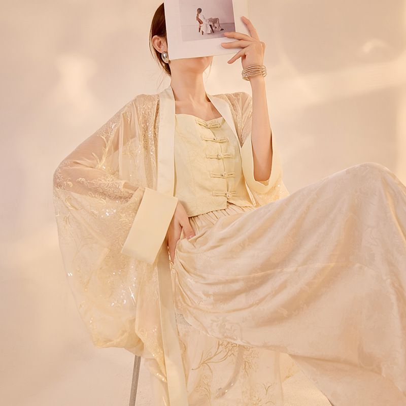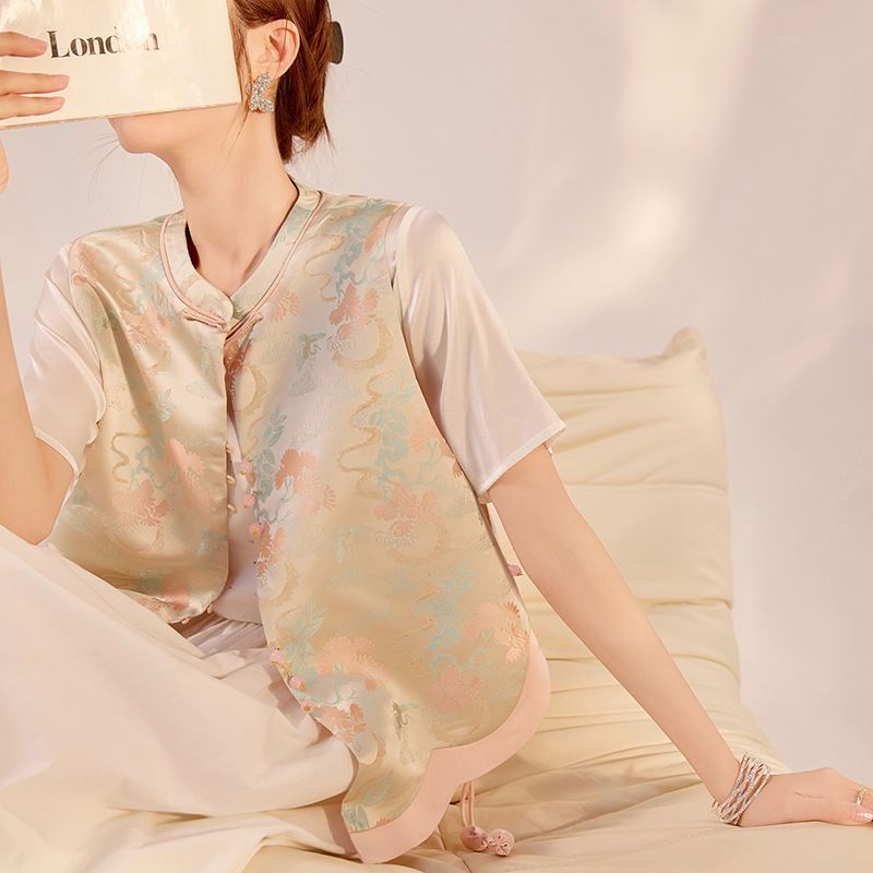 新作中国風盤扣織り刺繍入り背中新中式レトロ独特デザイン桑蚕糸ベスト ZX型N2022