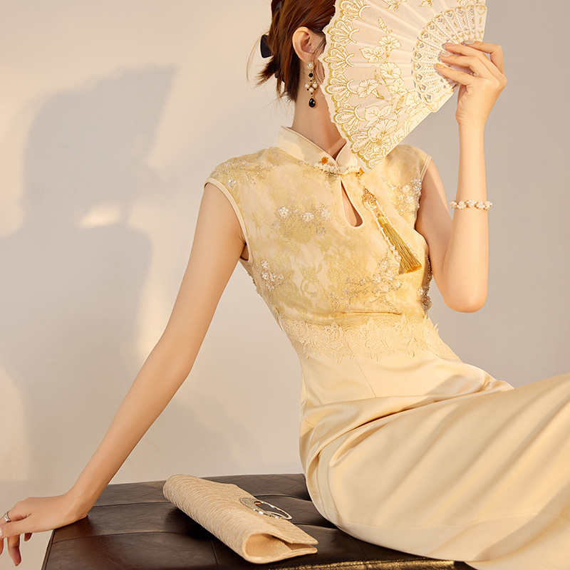 新しい中国風のハイエンド気質レース刺繍ドレス、フェミニンで美しい国民スタイル改良されたチャイナドレス N3111